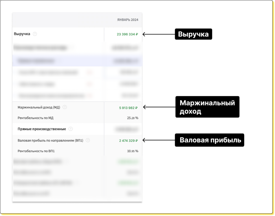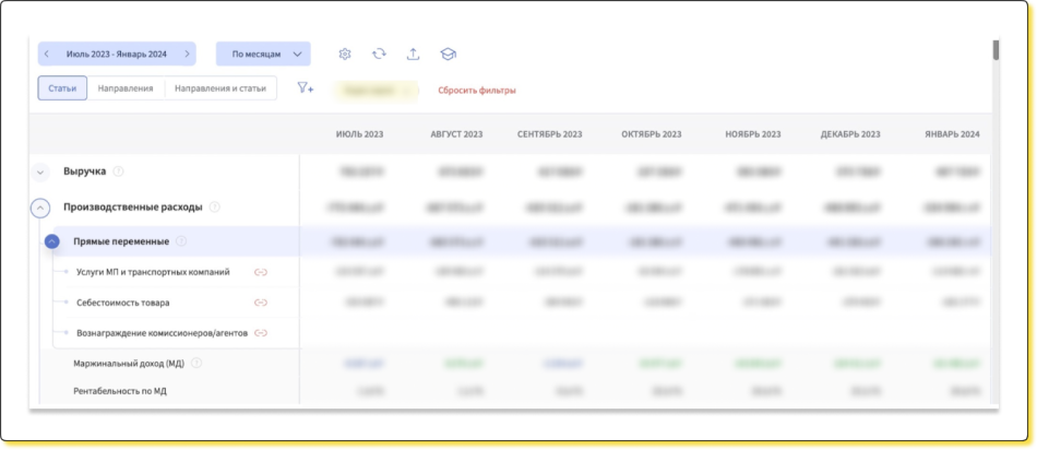 ↑ Три управленческих отчета начали собирать и вести в сервисе автоматизированного финансового учета Финтабло — на скрине ОПиУ со скрытыми данными, чтобы сохранить конфиденциальность клиента.