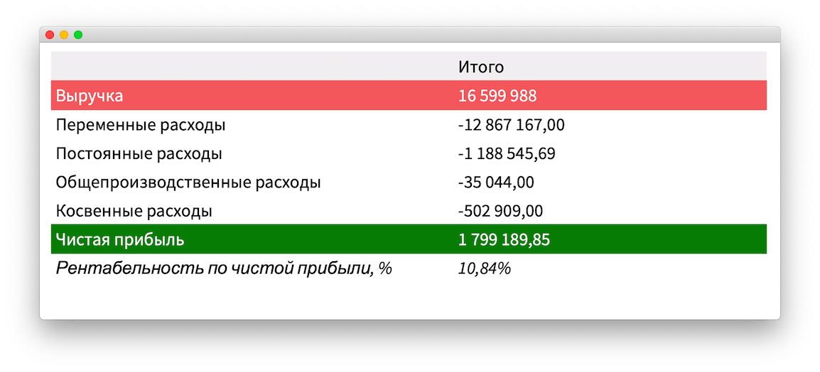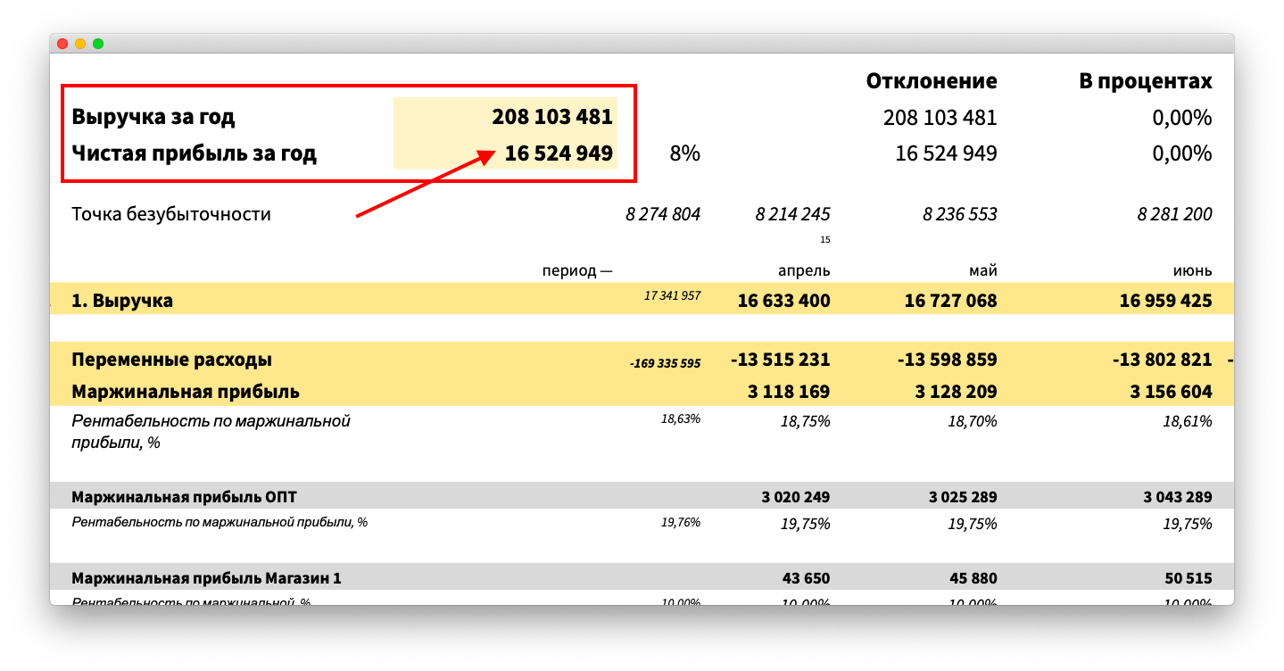 Когда я собрала финмодель, увидела, что чистая прибыль компании за год — 16,5 млн рублей, вроде нормально: