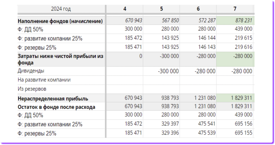 Формирование фондов не ограничилось дивидендами. Оптимизация финучета позволила также создать еще два фонда: на развитие и резервы компании.