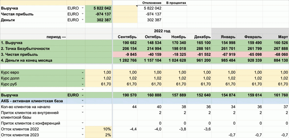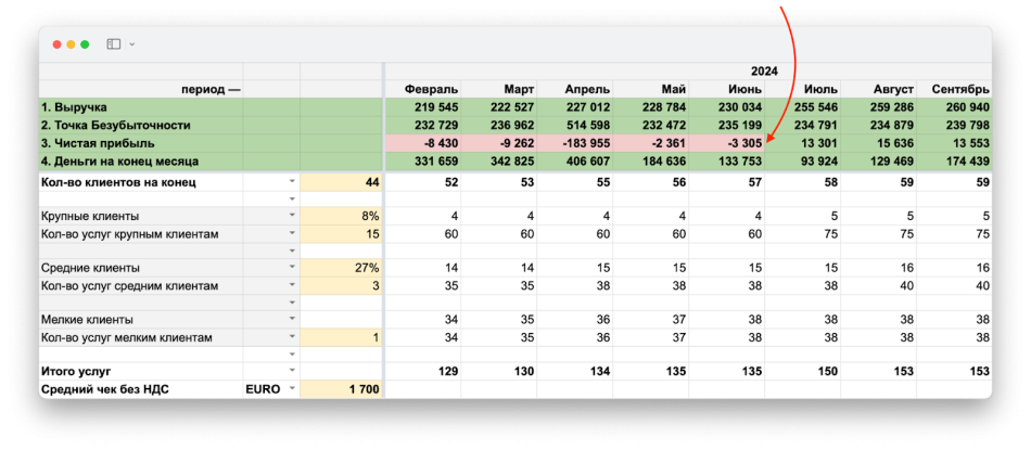 Мы прошлись по всем статьям расходов и доходов. Продумали, какие новые траты предстоят компании, а на чем она, наоборот, сможет сэкономить или заработать больше. Учли всё: от закупки оборудования для клиентов до выплаты премий за неотгуленные отпуска. Что могли — сразу посчитали в рублях, чтобы избавиться от курсовых рисков. В итоге мы поняли главное: