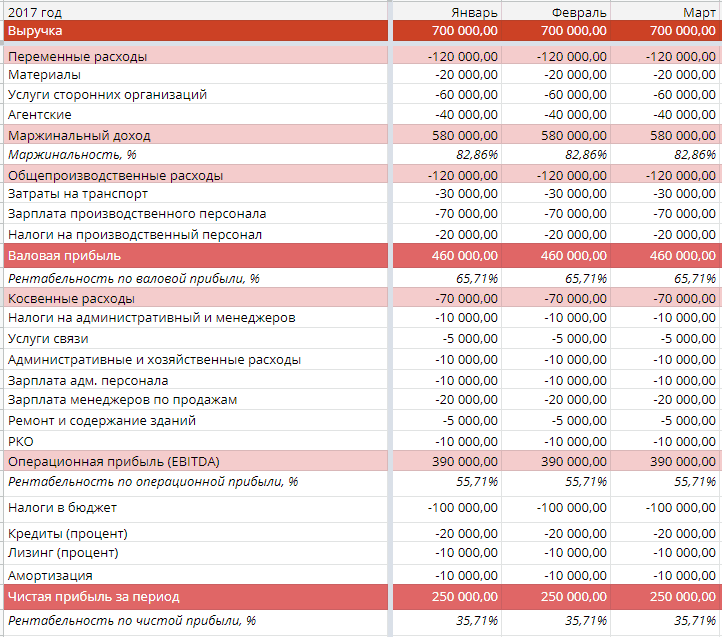 Косвенные расходы одинаковые: ежемесячно они составляют 400 тысяч рублей. Выручка зависит от сезона и крупных заказов: например, в феврале у нас было 6 миллионов, в марте — 2.