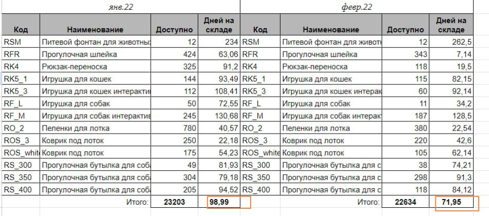 Сделали специальный шаблон и начали в нем учитывать скорость продаж разных товаров, а также срок, на который хватало остатков. Так компания понимала, что какой-то популярный товар закончится через месяц и его пора заказывать.