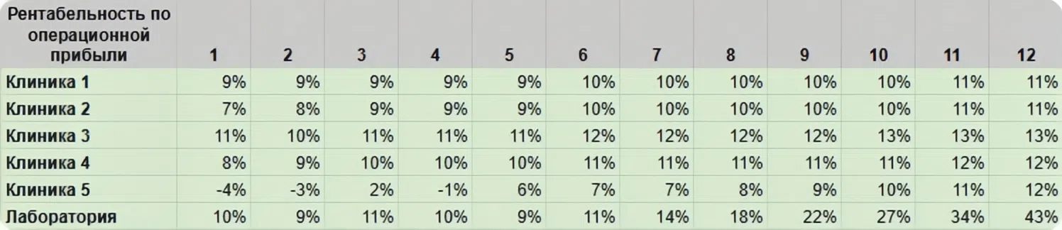 Итог — лаборатория существенно увеличила рентабельность по чистой прибыли.