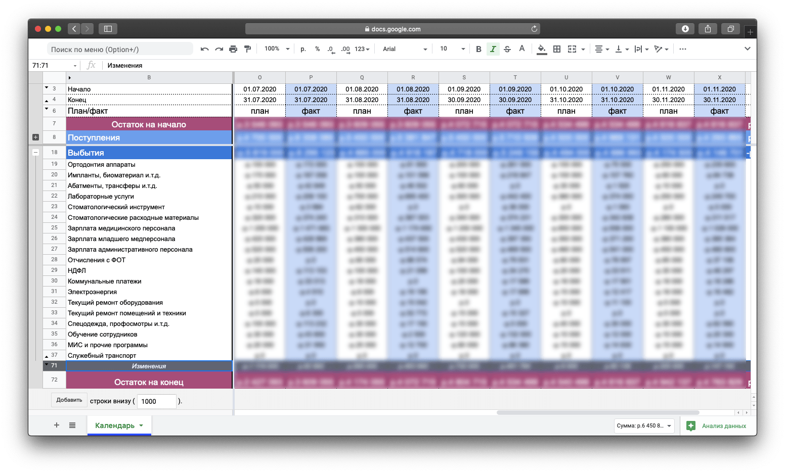 С доходов финансовое планирование только начинается. Когда с ними всё устаканилось, мы начали планировать и расходы. Подошли к задаче по старой схеме: взяли статистику по расходам за прошлые месяцы и на их основе стали бюджетировать будущие.