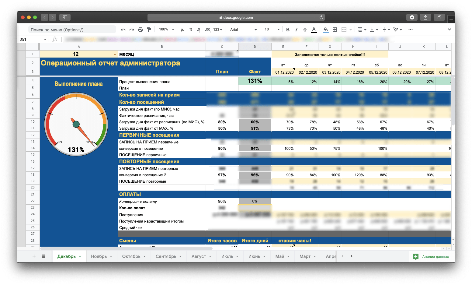 Я уже упоминала про ситуацию с отсрочками: врач наработал с клиентом на сотни тысяч, а деньги пришли только через месяц или еще позже. Поэтому мы с собственником разработали систему KPI для врачей и администраторов, которая помогла справиться с проблемой.