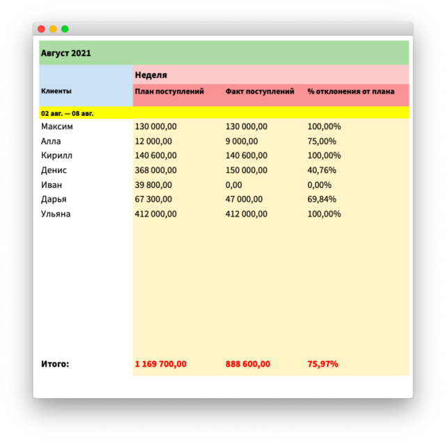 4. Начали планировать поступления и выбытия. До работы с финдиректором у отдела продаж не было никакого плана — сколько продали, столько продали. Когда ввели план продаж, стало легче планировать поступления от клиентов: