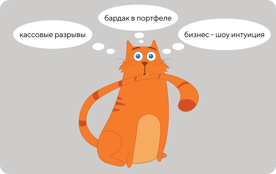 Итак, компания «Котик и хвостик» работала «по наитию», собственники тренировали интуицию, которая, конечно, нередко их подводила. Были кассовые разрывы и перегрузки команды. Управление портфелем проектов компании был плохо организовано, из-за чего увеличить валовую прибыль было невозможной задачей.