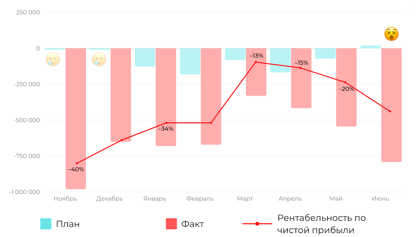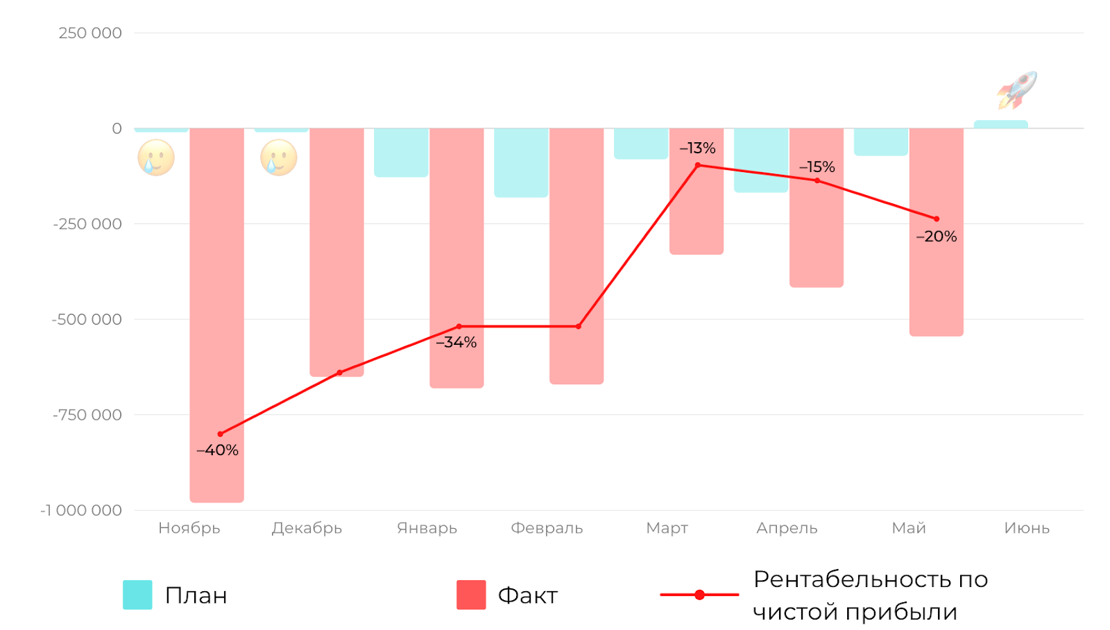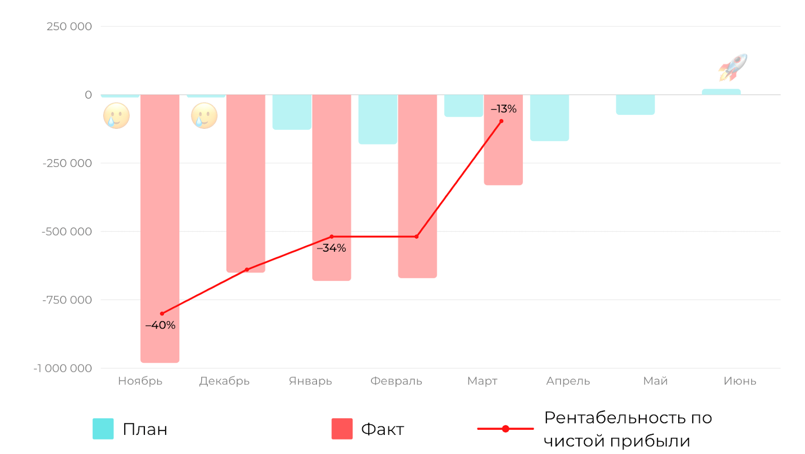 Собственник понимал, что с растущими убытками не получится выйти в плюс через полгода. На основе цифр мы приняли несколько управленческих решений и в феврале их реализовали.