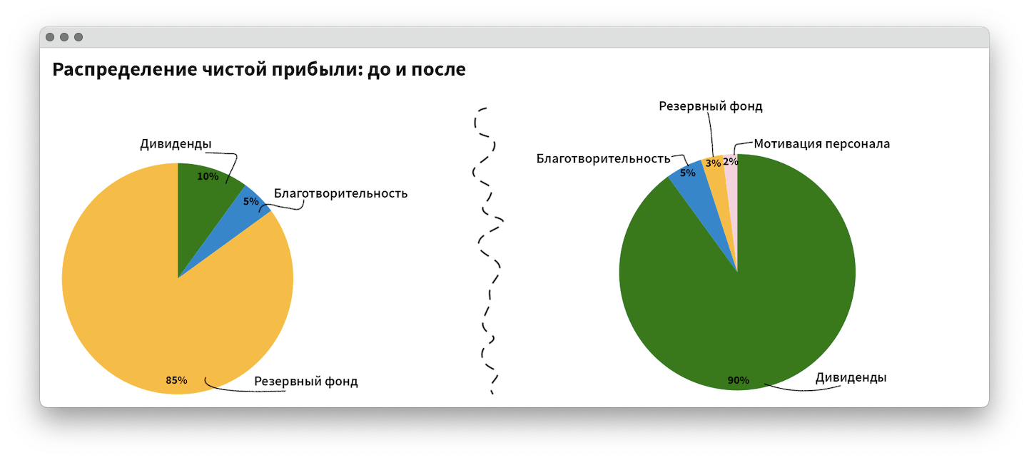 Схематично распределение прибыли до и после нашей работы можно представить так: