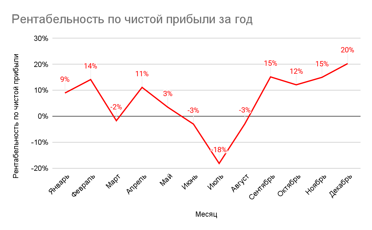 В итоге: увеличили выручку на 40%, а рентабельность по чистой прибыли выросла до 20%