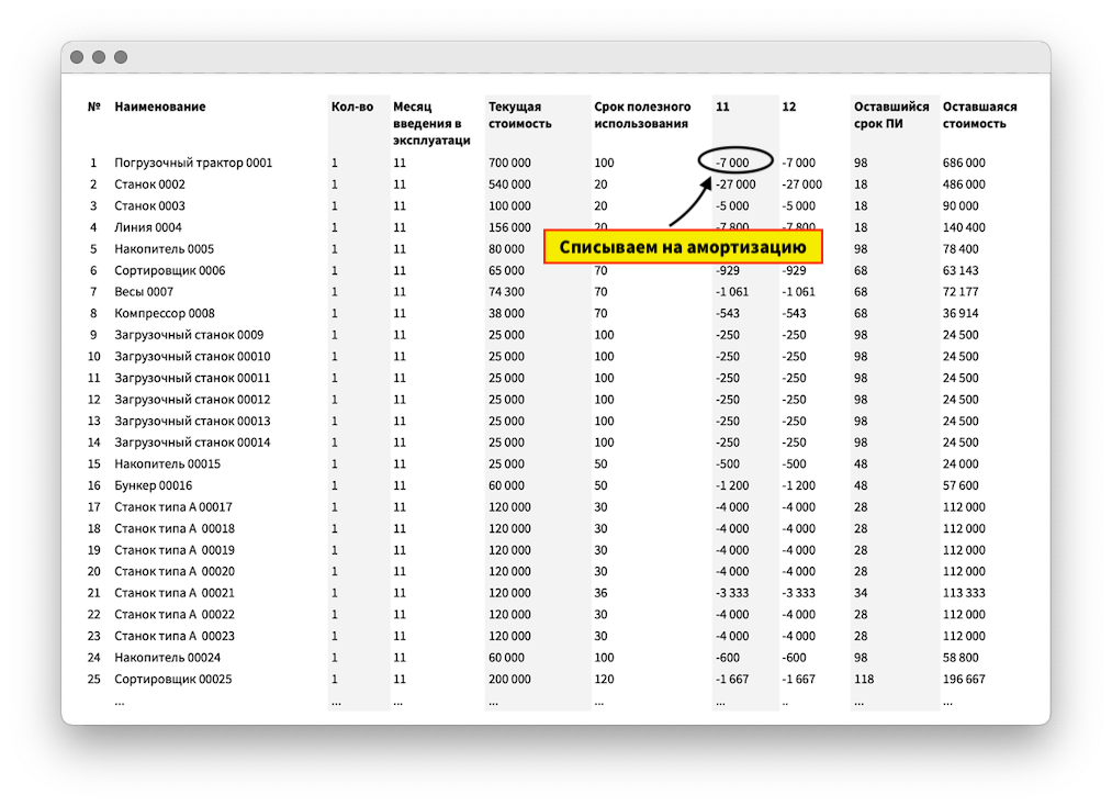 Амортизация — это такое размазывание крупных покупок на несколько месяцев или лет. Например, компания покупает станок в 1993 году за 10 млн рублей. Она может списать сумму в расходы в августе 1993 года, но это будет некорректно: ведь станком компания будет пользоваться не один месяц, а долгие годы. Еще может вообще «забыть» про покупку, чтобы не видеть страшных цифр в отчетах, но это совсем уж как-то по-тинейджерски.