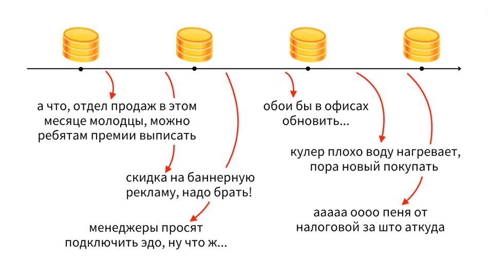 Наступает конец месяца, и оказывается, что тут надо заплатить, тут докупить, там перевести аванс и так далее. В результате чистая прибыль расходится до копейки: