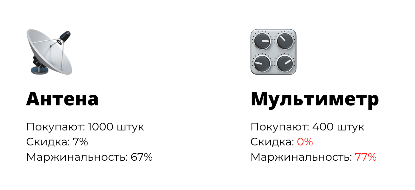 Я заметила, что весь ассортимент у компании условно делится на две категории: «покупают часто и со скидкой» и «покупают редко, но без скидки». В итоге популярные товары по маржинальности проигрывали тем, которые брали редко, и никто с этим ничего не делал.