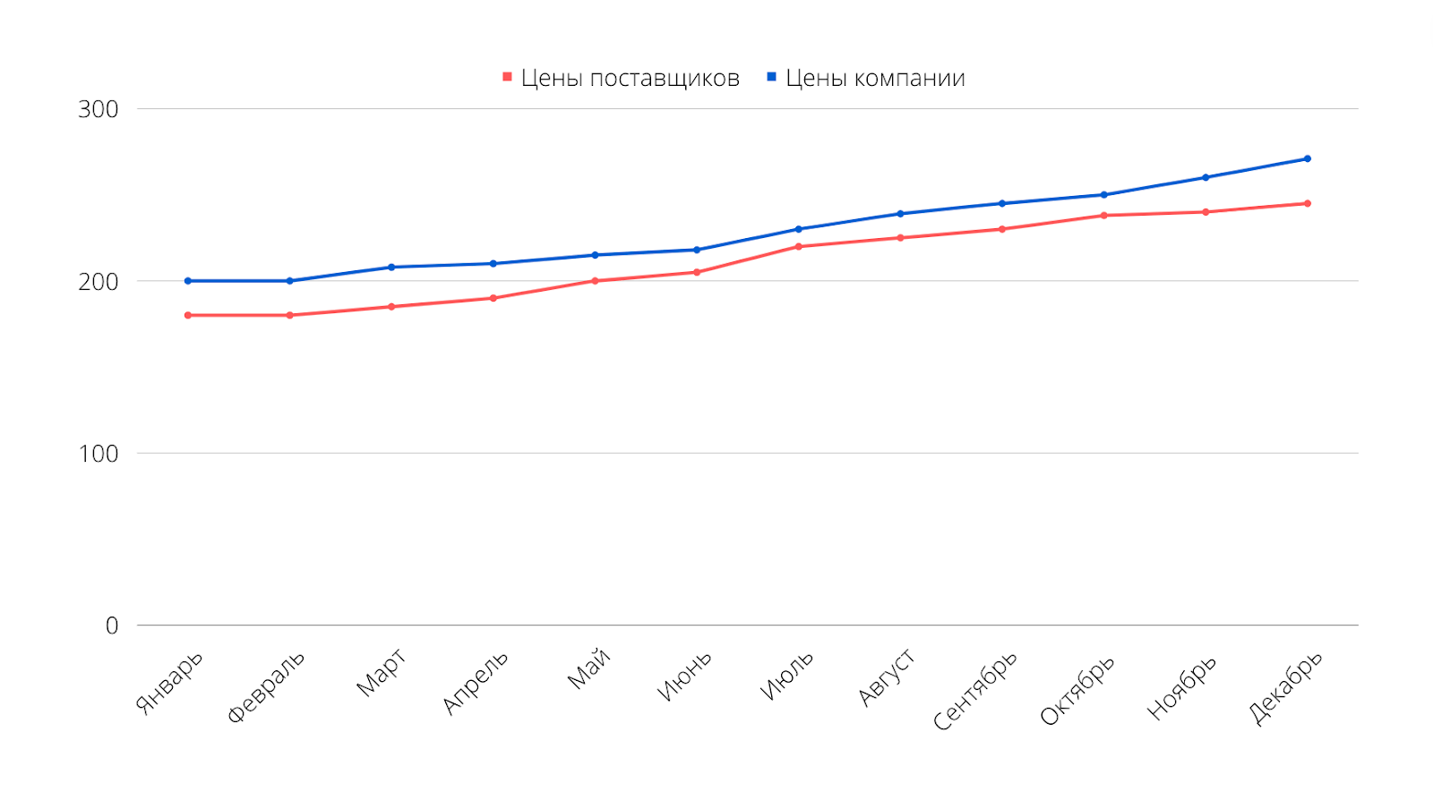 Чтобы это исправить, мы поработали с ценообразованием: подняли цены и стали пересматривать их раз в квартал, а не раз в год. Теперь «Лад и хлад» увеличивает ценник плавно, вслед за поставщиками: