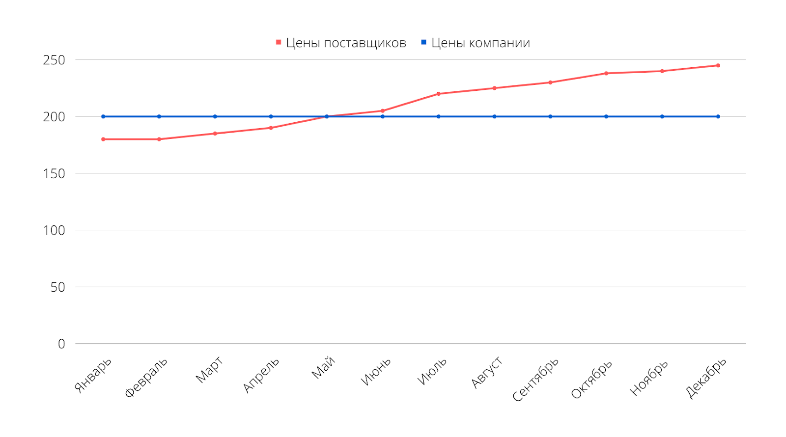 Поставщики поднимали цены постепенно, а «Лад и хлад» пересматривал свои только раз в год. Например, если в начале года на покупку каких-то деталей уходил 1 млн рублей, то в конце года — уже 1,2 млн. То есть стоимость товаров росла, а цены «Лад и хлад» оставлял прежними:
