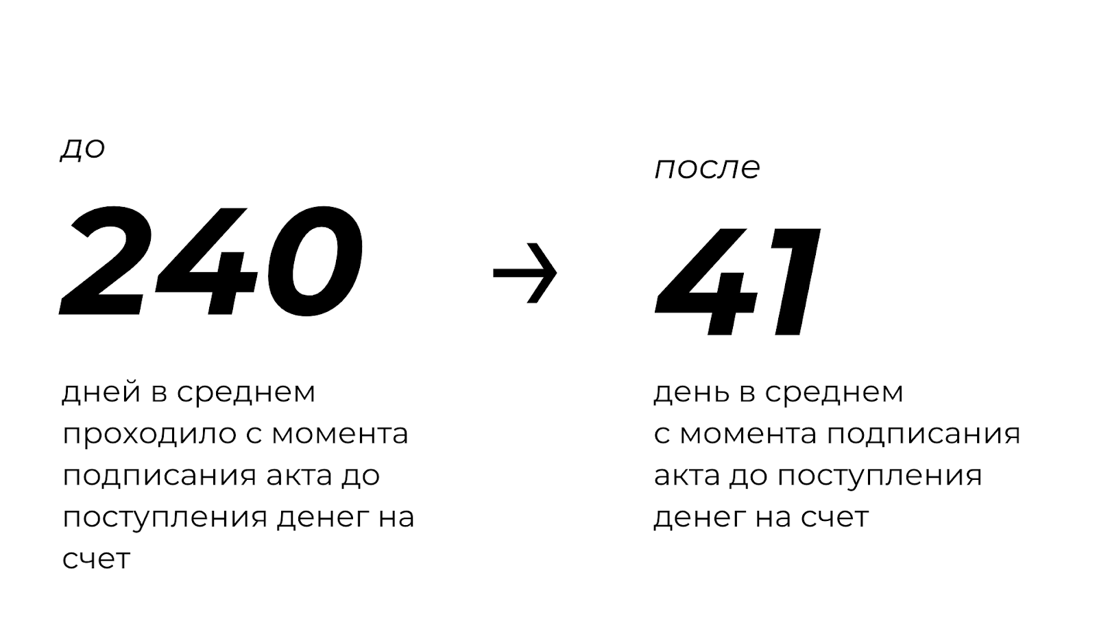 → Стали в шесть раз быстрее получать деньги от клиентов: за 41 день вместо 239