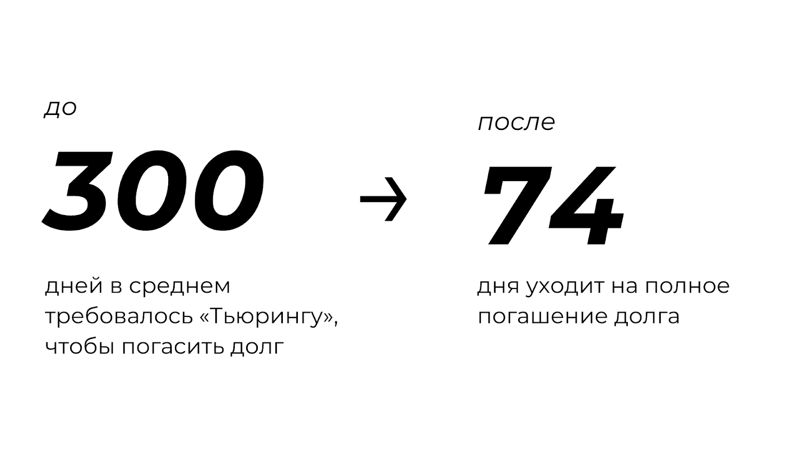 Кредиторка тоже стала оборачиваться быстрее, потому что у «Тьюринга» вовремя появлялись деньги, чтобы расплачиваться с долгами: