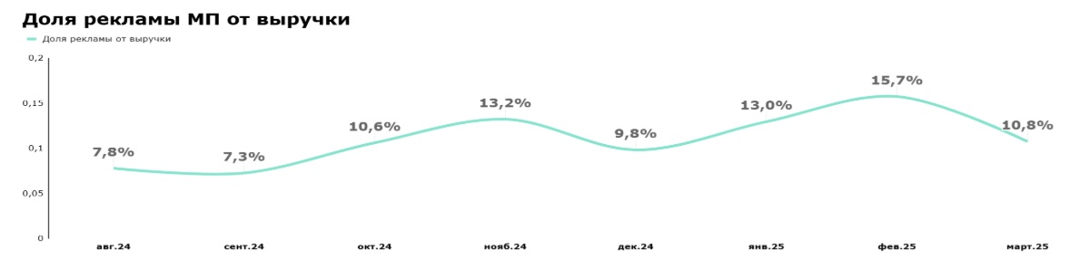 Комплексный подход позволил резко снизить долю рекламных расходов в выручке. Уже в марте 2025 года этот показатель достиг значительного улучшения, снизившись с 15,7% до 10,8%. Оптимизация расходов на рекламу стала ключевым вкладом в восстановление маржинальности и чистой прибыли.