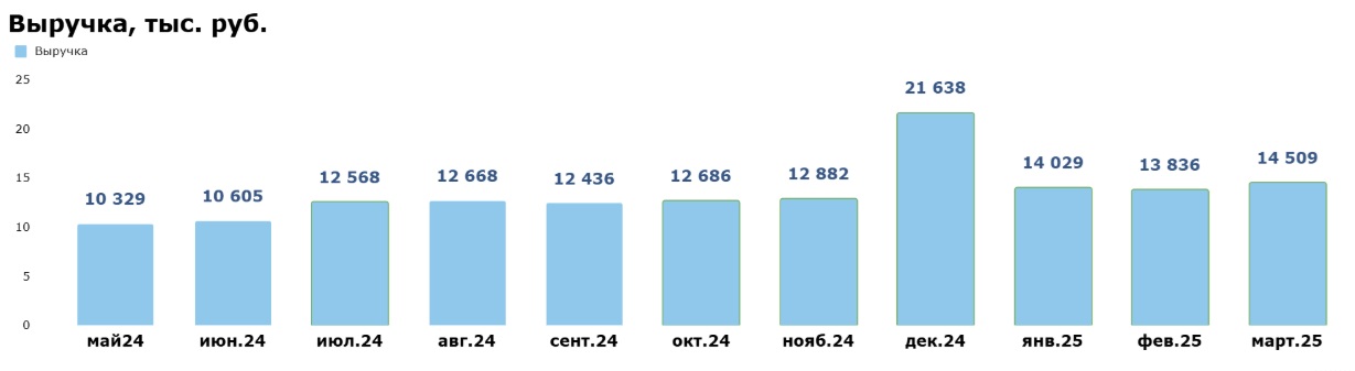 За счёт всех предпринятых мер уровень месячной выручки зафиксировался на отметке не ниже 12,5 млн руб. с июля 2024 года. С декабря 2024 года — не ниже 13,8 млн руб.