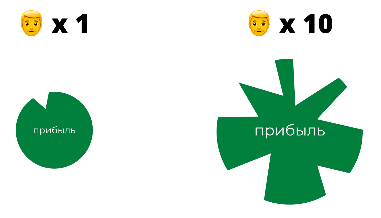 Каждая сделка со скидкой съедала кусочек чистой прибыли «Луга и плуга». Поэтому та и не росла, сколько бы собственник ни прикладывал усилий: чем больше у компании было клиентов, тем больше она заключала неприбыльных сделок и тем меньше получала прибыли: