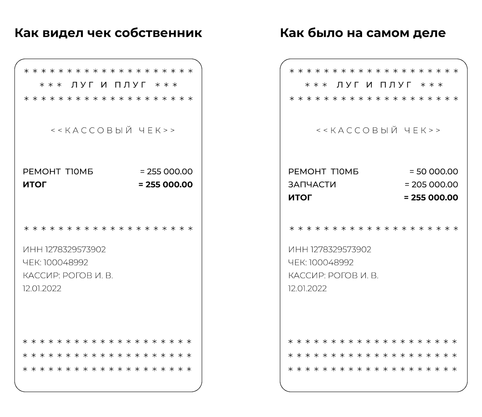«Луг и плуг» оказывал клиентам две услуги: ремонтировал технику и закупал для этого запчасти. Но собственник не разделял эти услуги на разные статьи дохода и называл просто «ремонт»: