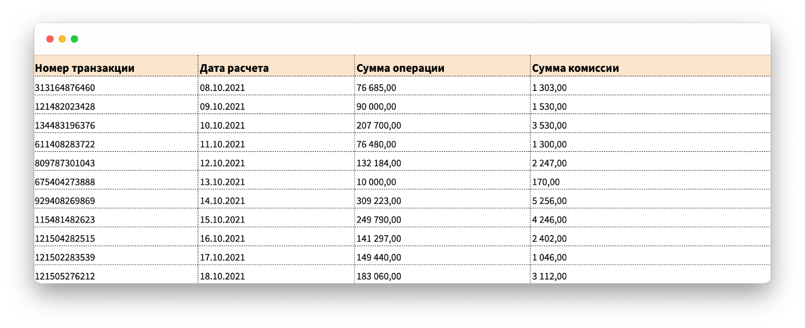 Чтобы быстро выловить расход на комиссии из слепой зоны, я воспользовалась банковским отчетом об эквайринге. Он есть во всех банках, но собственники редко про него знают. Выглядит примерно так: