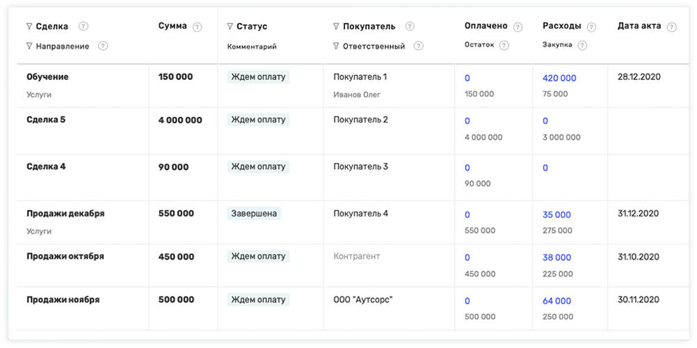 Поскольку в листе учета сделок отражаются не только доходы ЦФО, но и расходы, это позволило рассчитать выручку лаборатории. Все просто — затраты клиник на продукцию лаборатории автоматически формировали ее доход.