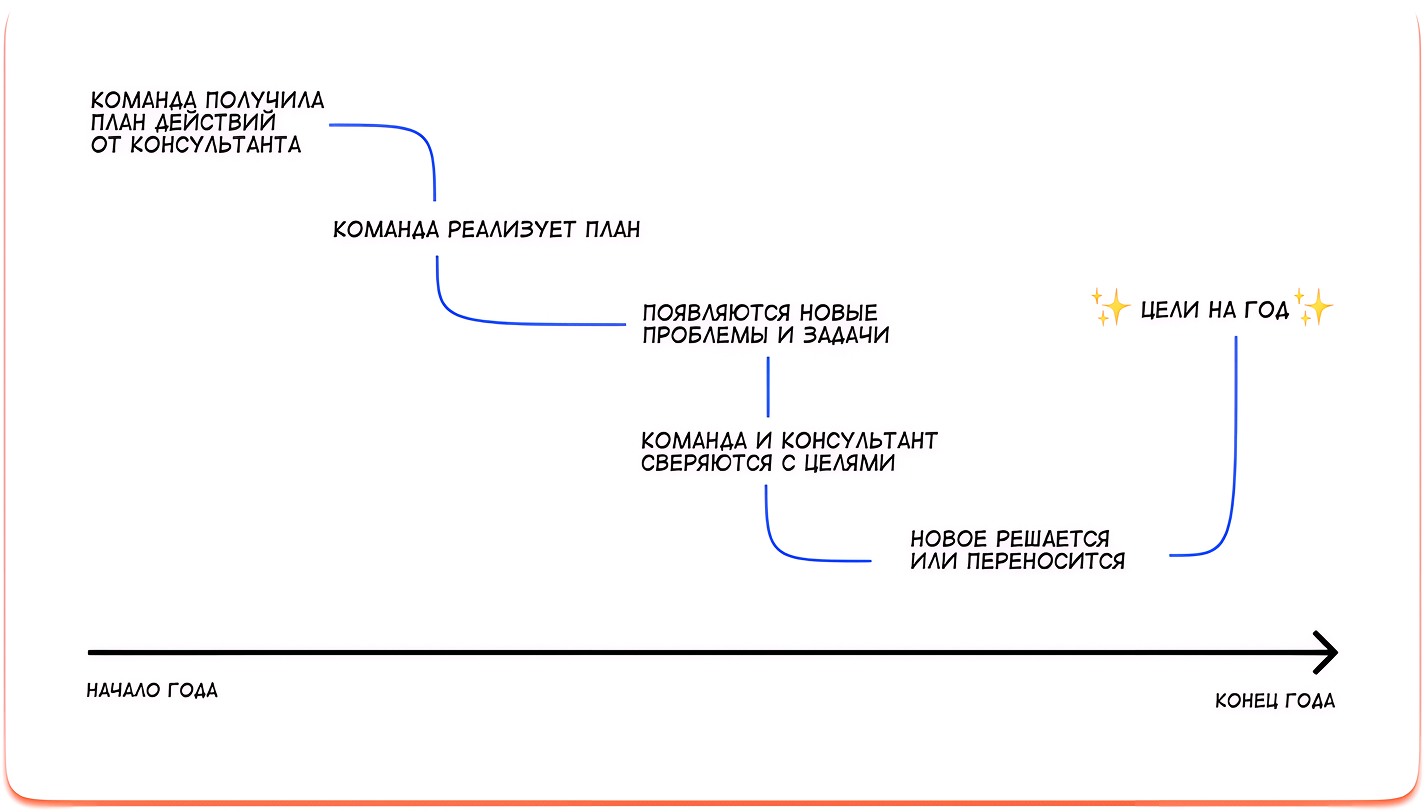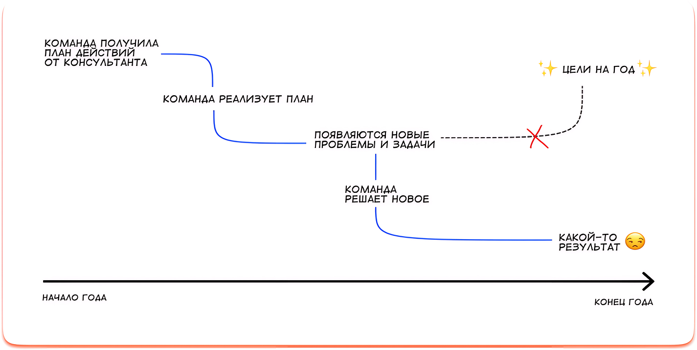Раньше компания пыталась сама проводить стратегические сессии и действовала так ↓