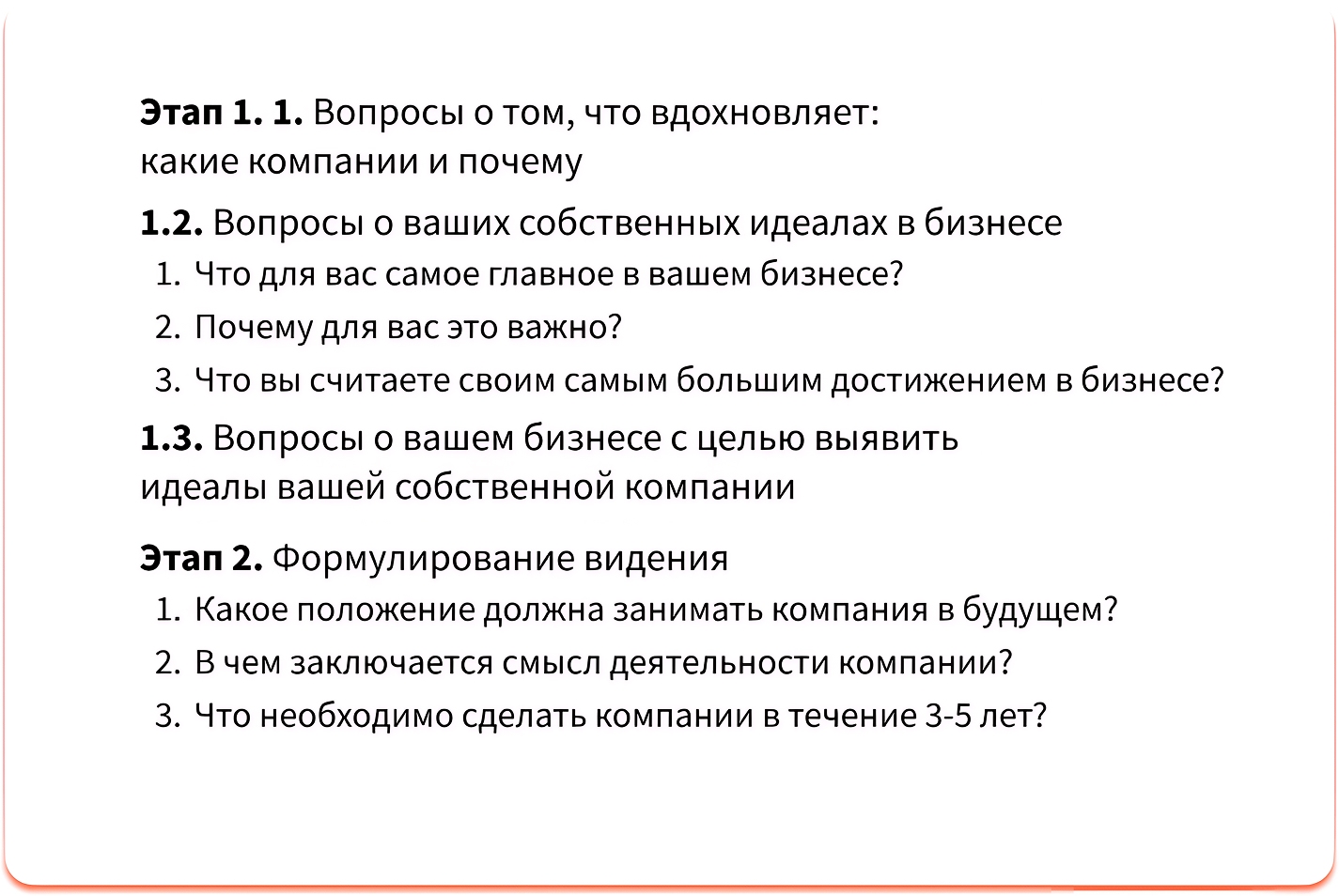 Видение собственника — это образ будущего, стратегический вектор развития компании. В рамках стратсессии собственник формулирует долгосрочные цели и определяет, в каком направлении должен двигаться бизнес. Владелец бизнеса задает ключевые параметры: