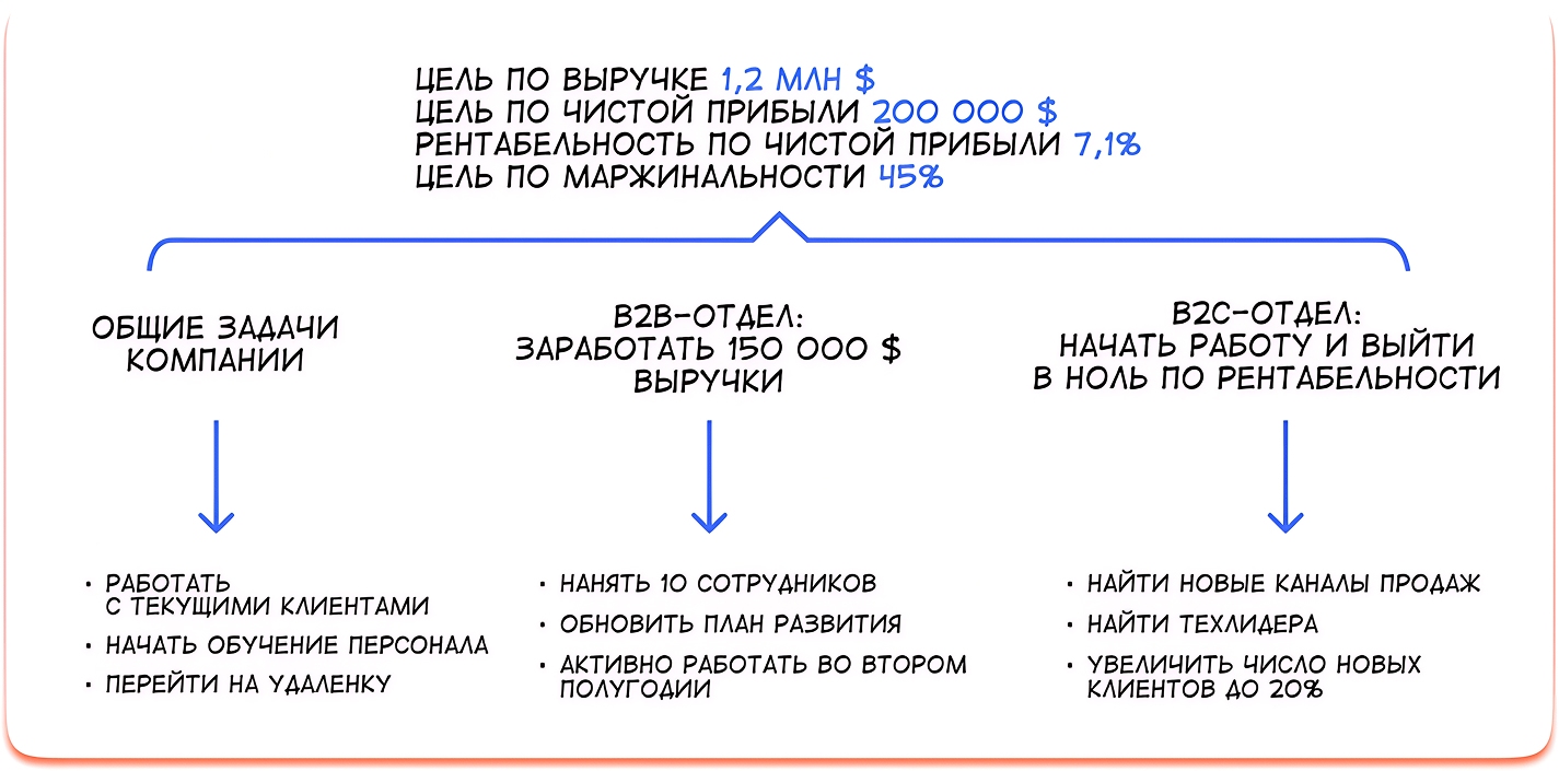 Если бы у компании не было цели разработать бюджет, то новые сценарии развития мы бы строили на основе финансовой модели компании. Ставили цели по выручке, прибыли, рентабельности и рассчитывали целевые показатели для сотрудников.