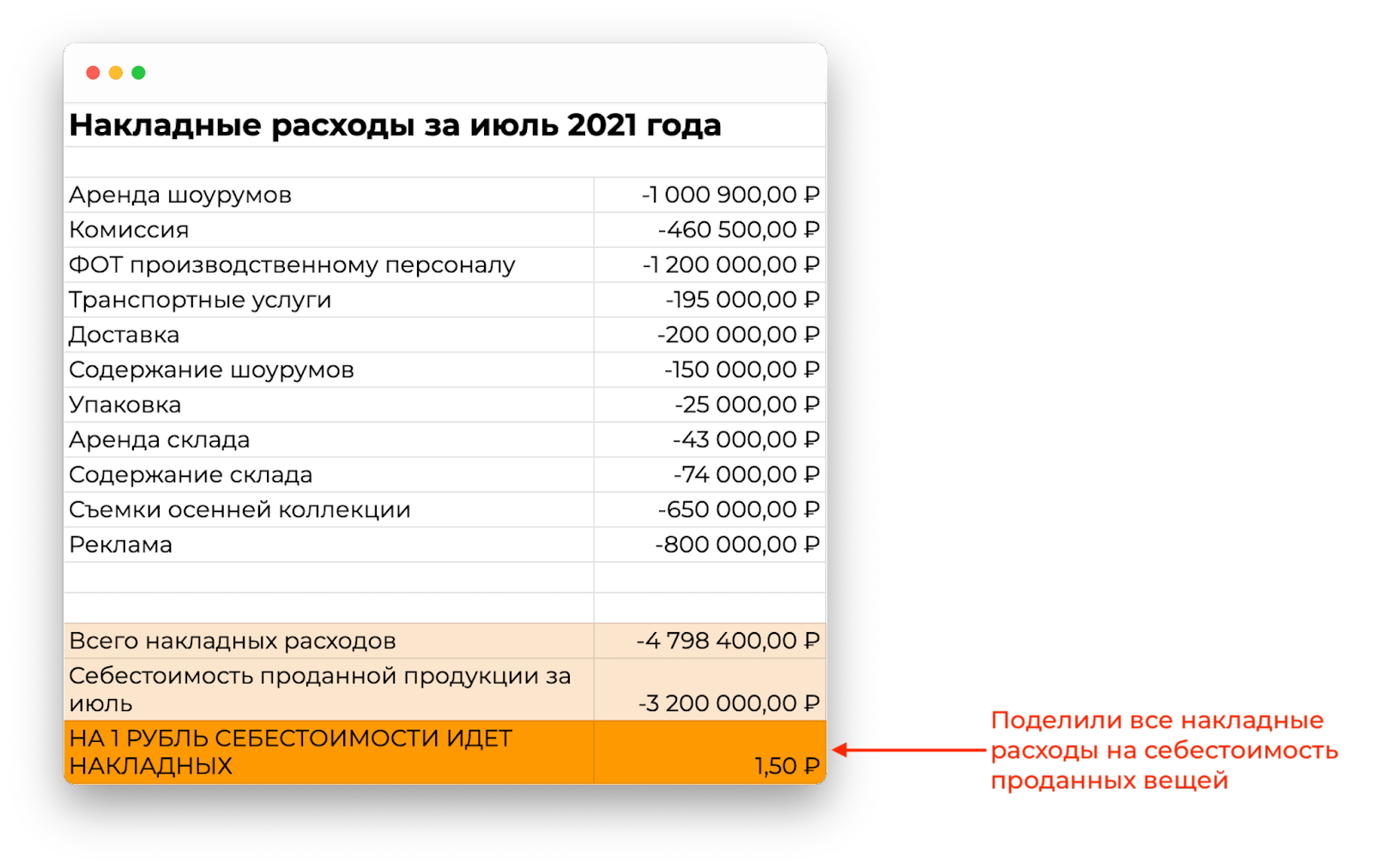 Так я узнала, сколько копеек накладных расходов приходится на рубль себестоимости любой вещи: