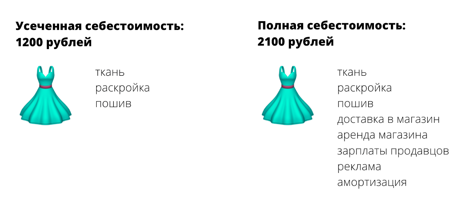 Себестоимость — это затраты, которые несет компания на создание товара. И тут есть нюанс: можно считать усеченную себестоимость, а можно — полную.