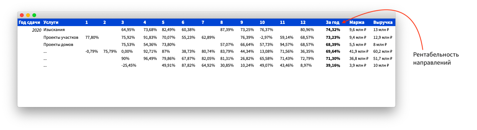 Примерно знали, что когда-то прибыль будет, но когда и сколько — нет. И чтобы узнать, я собрал план сдачи проектов, посчитал переменные и постоянные расходы, а затем — прибыль за год.