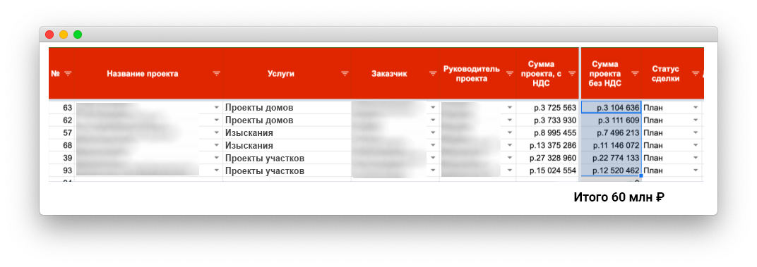 Мы начали учитывать договоры на стадии подписания, чтобы узнать, сколько еще выручки компания получит. И нашли 60 млн рублей: