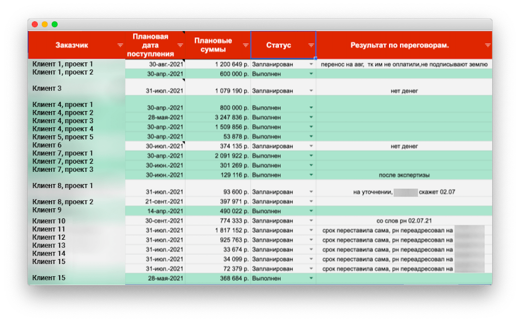 И начали действовать по старинке: обзванивать должников и напоминать об оплате. А в табличке фиксировали результаты переговоров, например, дату обещанного платежа или причину, по которой заказчик не платит.