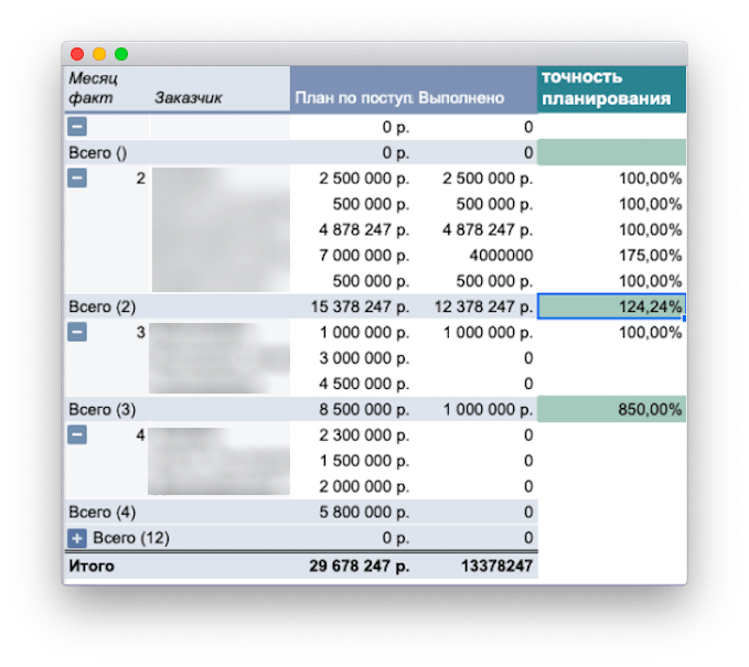 Получили первые деньги с должников и поняли, что система работает. Значит, компания может планировать денежный поток с учетом выбитой дебиторки. Так и сделали: в отдельной табличке записали, кто, когда и сколько денег обещал прислать и кто, когда и сколько прислал по факту: