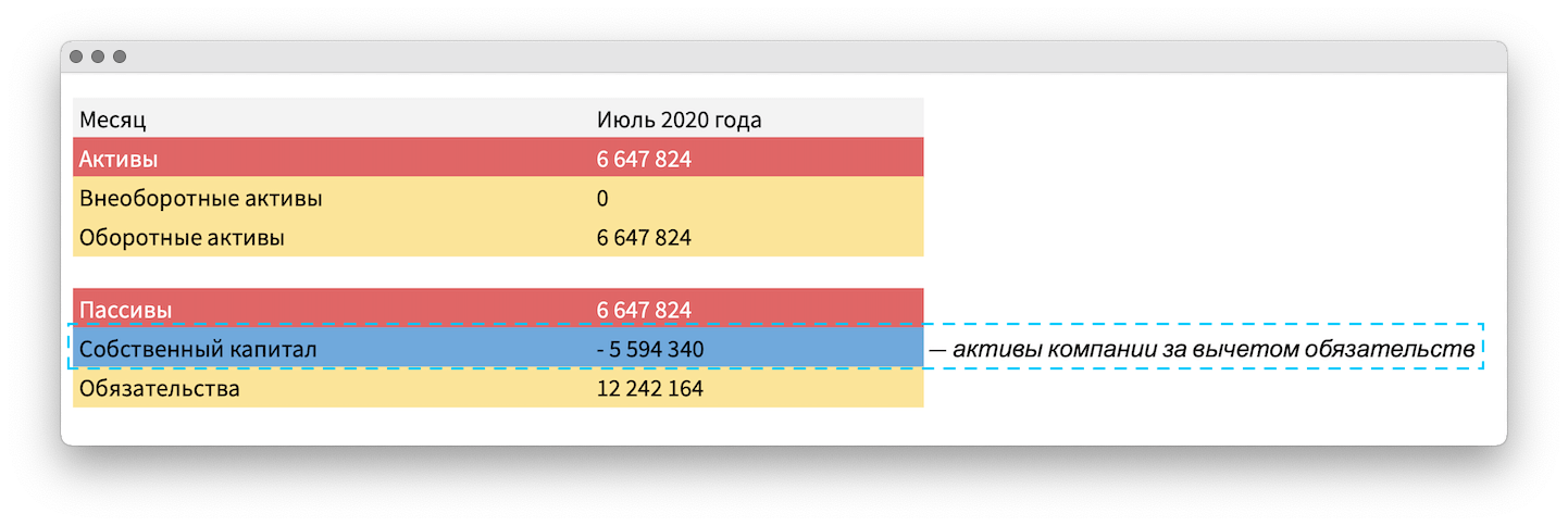 Июль 2020 года. Собственник считает, что всё супер. А я нахожу дыру в собственном капитале в -5,5 млн ₽