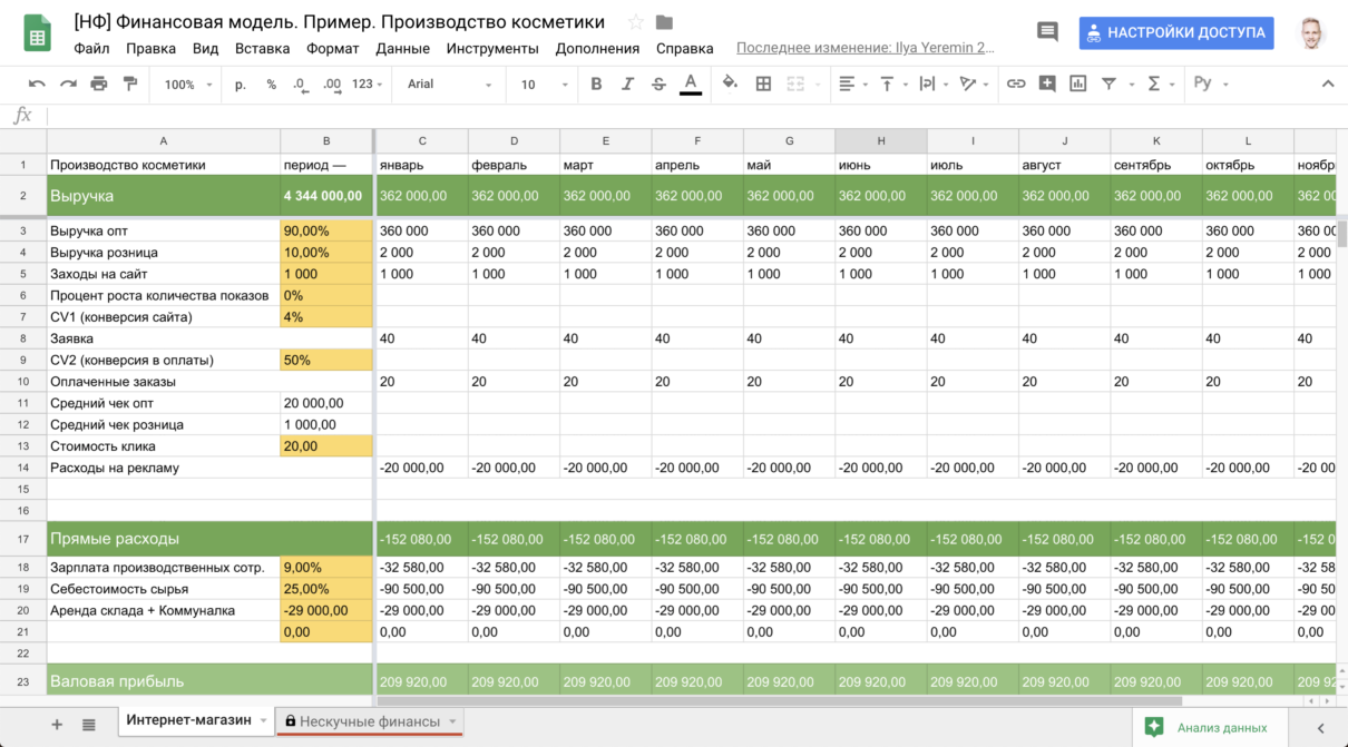 Финмодель поможет просчитать варианты с открытием нового направления: организации доставки или пункта бесконтактного самовывоза или записи и проведения мастер-классов на тематику, в которой вы владеете экспертностью.