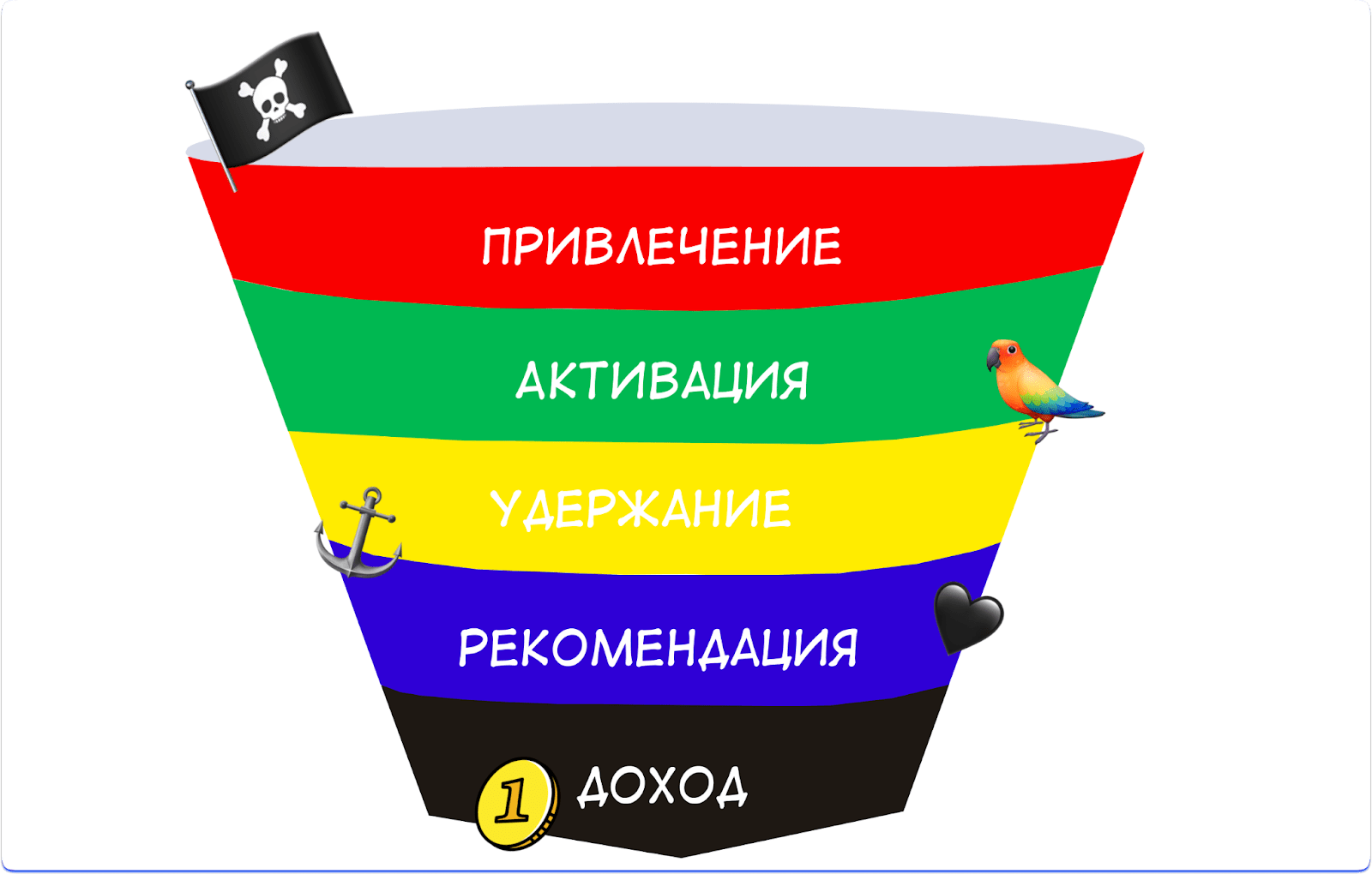 Пиратские метрики, или AARRR, — это модель воронки продаж. Эти метрики называют пиратскими, потому что аббревиатура напоминает рычание пиратов. Что-то из серии: «Ааррр! Тысяча чертей!» В этой статье мы разберем, как работать с воронкой AARRR и какому бизнесу она подходит.