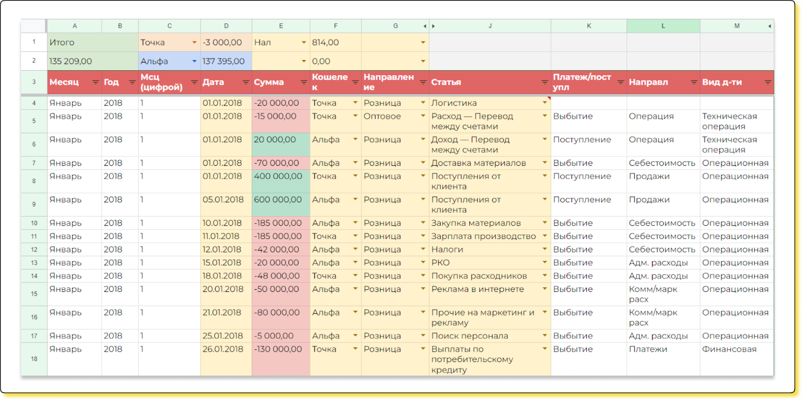 Анализ по направлениям помогает определить, что именно генерирует бизнесу деньги. А анализ статей — понять, почему в этом месяце мы заплатили деньги и в таком количестве.