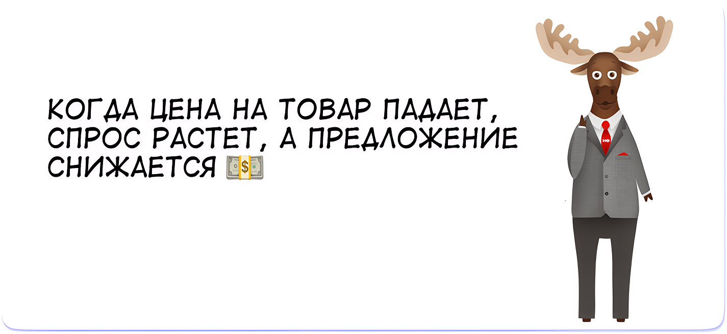 Существует закон спроса и предложения: когда цена на товар падает, спрос растет, а предложение снижается.