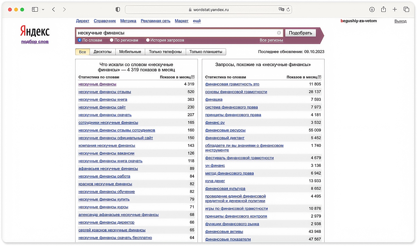 Яндекс Вордстат. В Яндекс Вордстате собираются все запросы, которые пользователи делают через поисковую систему Яндекс. Например, Иван ищет транзисторы в Воронеже, а Ольга — фитнес-студию в Домодедове. Все эти запросы попадают в Яндекс Вордстат вместе со статистикой по количеству запросов. По ней можно понять, что интересует людей.