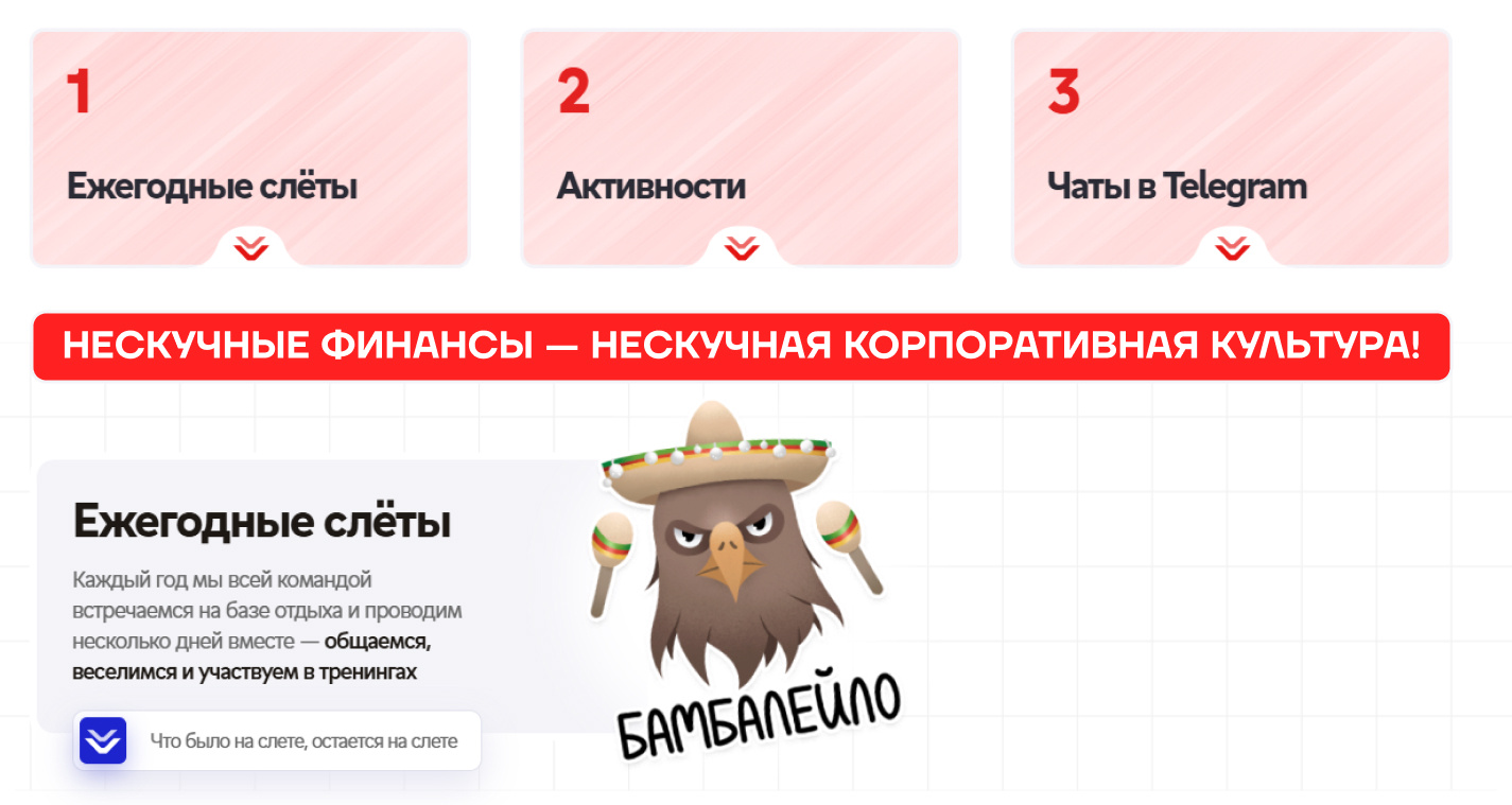 Мы в Нескучных уже давно освоили этот формат. Портал «Помогатор» — универсальная дорожная карта для новичков. Здесь есть всё, от принципов работы и контактов сотрудников до анонсов событий.