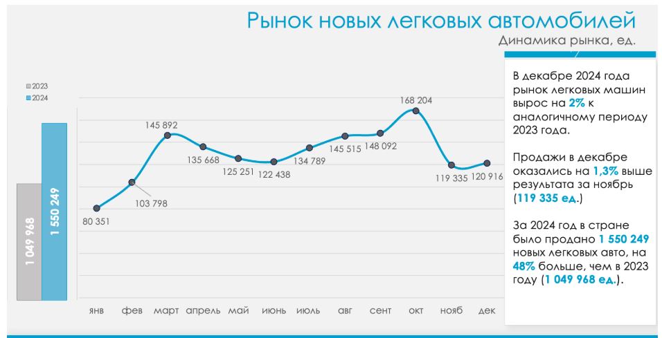 По данным аналитического агентства АВТОСТАТ, в 2024 году продажи легковых автомобилей выросли на 48%, и спрос продолжает расти.