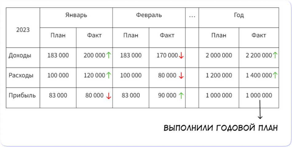 Важно не ждать конца квартала или года, а проводить план-факт каждый месяц. Иначе есть риск упустить форс-мажор, который потянет вниз годовой план.