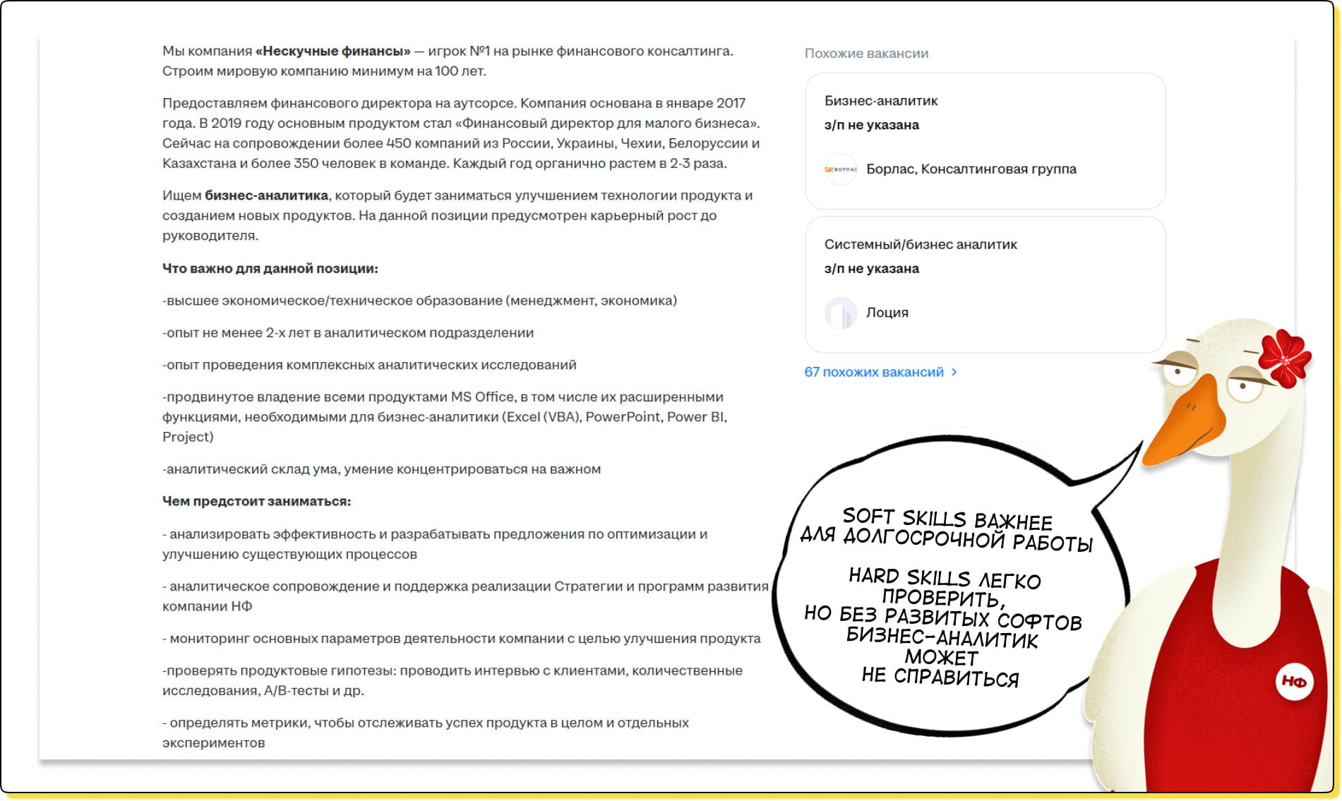 Для примера — так выглядела вакансия бизнес-аналитика, когда искали такого специалиста в Нескучные: