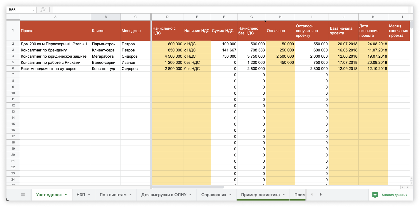 Вся соль в том, что вели только ДДС. ДДС — это хорошо, но мало. Из-за того, что не вели Учёт Сделок (о нём позже), непонятно — пришли деньги за уже выполненные работы или это аванс за новые проекты.