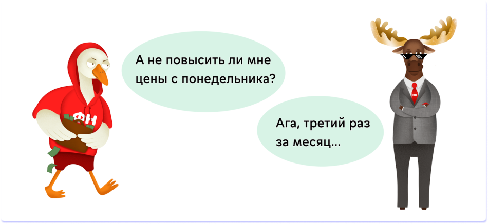 Но и здесь есть свои нюансы: повышение стоимости, даже на 50 ₽, нередко вызывает негативную реакцию клиентов. Поэтому часто повышать цены нельзя: неважно, на какую сумму увеличивать прайс, часть клиентов всё равно отвалится. Чтобы получить лояльных клиентов, компания должна дать им стабильность.