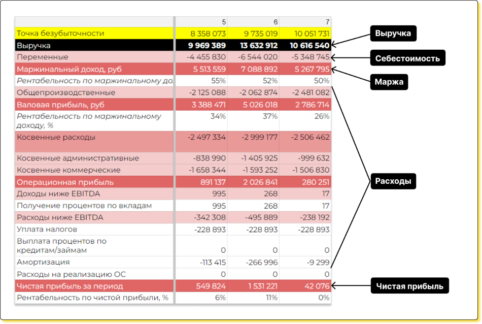 Маржа играет ключевую роль в определении точки безубыточности — того момента, когда выручка покрывает все расходы компании. Формула расчета проста ↓