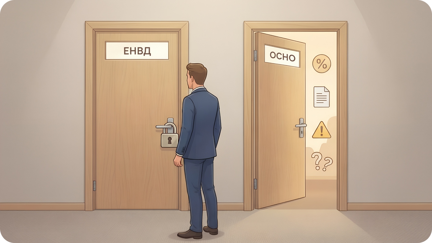 Чаще всего причина — управленческая инерция. ЕНВД существовал почти 20 лет, и бизнес привык к фиксированной и предсказуемой нагрузке. После отмены многие продолжили платить «примерно как раньше», не проверив, выбран ли новый режим.